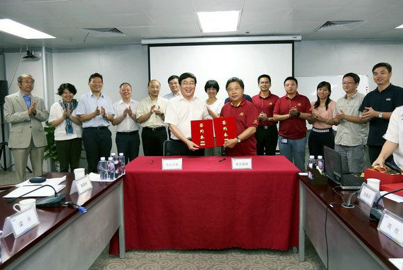 On September 9, the signing ceremony of the strategic cooperation framework agreement between Sun Yat-sen University (SYSU) and Beijing Genomics Institute- Shenzhen (BGI-Shenzhen) was held in Shenzhen. The attendees of the ceremony included Yang Huanming, chairman of BGI; Wang Jun, Director of BGI-Shenzhen; Xu Ningsheng, President of SYSU; Yan Guangmei, Vice President of SYSU; Li Mengfeng, Vice President of SYSU; and Xiang Lianghui, Assistant President of SYSU.