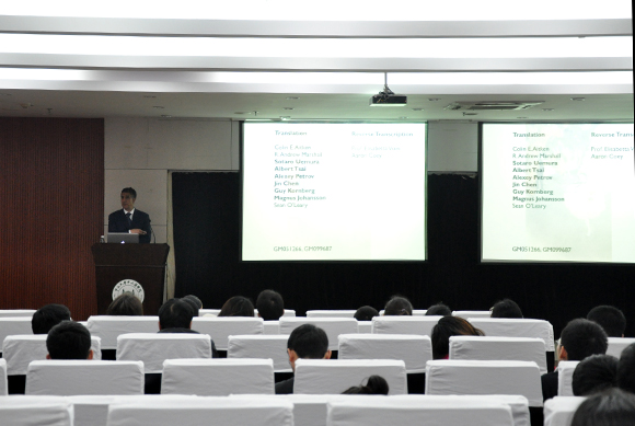 Professor Joseph Puglisi giving a lecture entitled “Dynamics of Protein Synthesis”