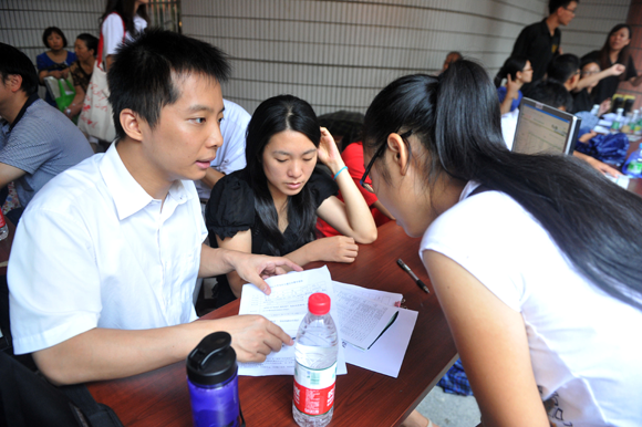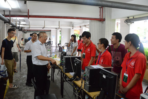 On August 15, the SYSU 2013 work of welcoming new students was carried out simultaneously on four campuses. Secretary Zheng Detao, Executive Deputy Secretary and Vice President Chen Chunsheng, Deputy Secretary and Vice President Zhu Kongjun, Vice President Li Shanmin went to four campuses respectively to inspect the work and visit the staff on site. President Xu Ningsheng, who was on a business trip, specially asked relevant departments to take necessary measures to respond to typhoon and rainstorm, ensure the safety of teachers, students and parents.