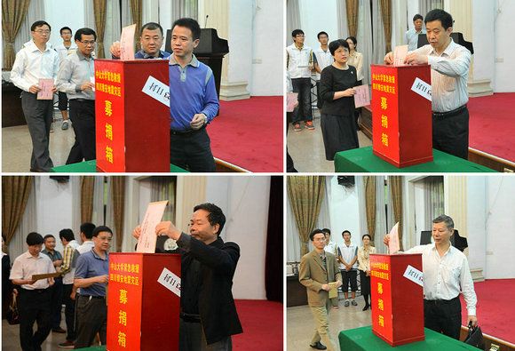Led by Zheng Detao, Secretary of SYSU Party Committee, and Chen Chunsheng, Executive Deputy Secretary and Vice President of SYSU, the University leaders, schools (departments), affiliated hospitals (centers), administrative departments and units as well as the teachers and students present made donations to quake-stricken areas.