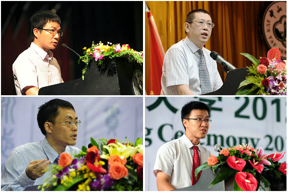 Teacher Representatives He Xionglei, Ma Jun, Fu Ke and Xie Shi delivering a speech respectively