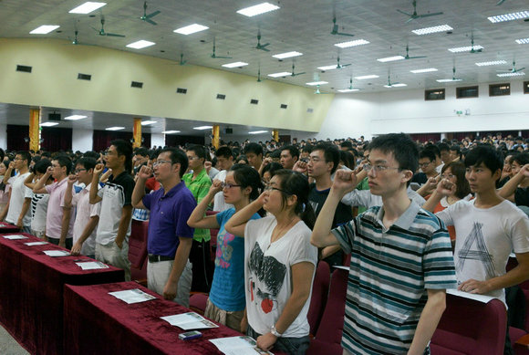 On September 13, the opening ceremony for the 2012-2013 academic year was held on Guangzhou South Campus, Guangzhou North Campus, Guangzhou East Campus and Zhuhai Campus in turn in Sun Yat-sen University. The newly registered over 8,000 undergraduate students and over 6,200 master’s degree and doctor’s degree candidates attended the ceremony. Zheng Detao, Secretary of SYSU Party Committee, Xu Ningsheng, President of SYSU, Chen Chunsheng, Executive Deputy Secretary and Vice President, Wang Jianping, Executive Vice President, Xu Jiarui, Executive Vice President, Li Ping, Deputy Secretary, Lin Haoran, Academician of Chinese Academy of Engineering, Ji Liangnian, Academician of Chinese Academy of Sciences, Bao Jigang, Assistant to the President, Cheng Huanwen, Assistant to the President, Li Wenjun, Assistant to the President, and leaders of schools and departments attended the ceremony. The ceremony was presided over by Chen Chunsheng, Executive Deputy Secretary and Vice President. Li Ping, Deputy Secretary, and Wang Jianping, Executive Vice President, led the oath respectively.