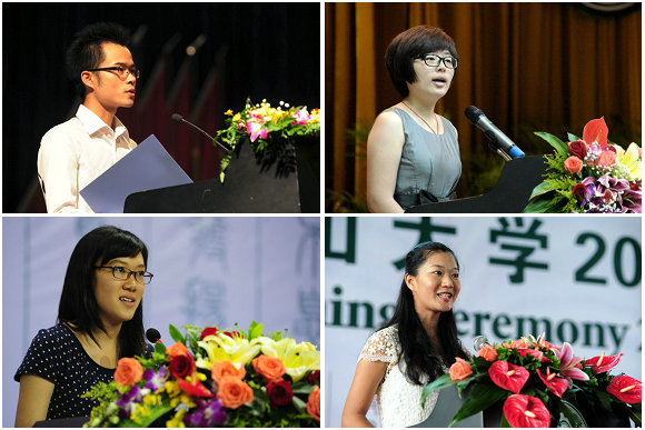 Senior student representatives Yao Honghu, Xu Yao, Huang Jingwen and Zhu Minghua made a speech respectively at the four ceremonies. They warmly welcomed the new students to join in the big family of Sun Yat-sen University, and talked about their study, life and work experience and their understanding of the SYSU spirit and culture. New student representatives Cao Xuemei, He Wei, Lin Hongzhang and Pan Wenmin made a speech respectively. Some of them are new postgraduate students who have studied in SYSU before and some of them are first-year undergraduate students. Without exception, they all expressed their yearning for and attachment to SYSU, and said that they will follow the instructions of the professors and senior students and keep on challenging themselves to strive for truth and knowledge.