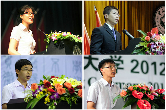 Senior student representatives Yao Honghu, Xu Yao, Huang Jingwen and Zhu Minghua making a speech respectively