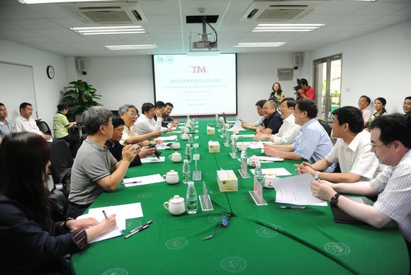 Vice Chairman Xu Jialu (front row, from left) visit our school Chinese textbooks global information base Exhibition Center