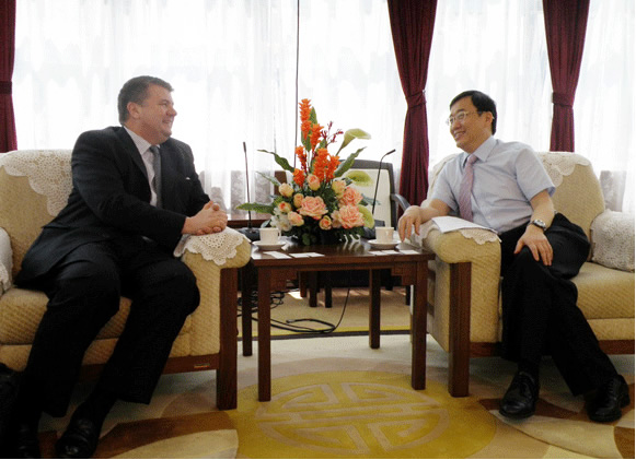 On May 19, John Hope, Vice President of Nature Education of the US Nature Publishing Group, together with Doctor Zhu Xiaofeng, chief representative of Nature Education in China, visited our university. President Xu Ningsheng met the guests.