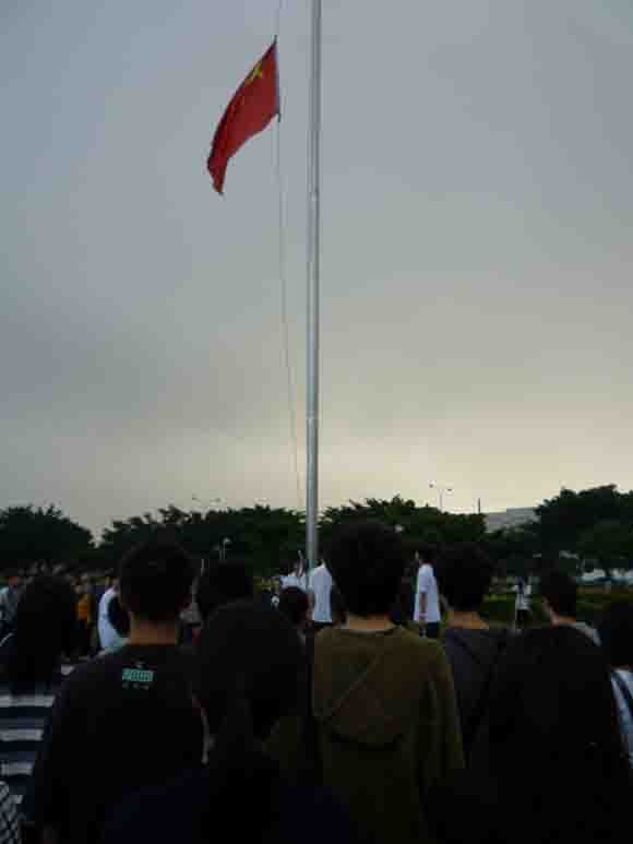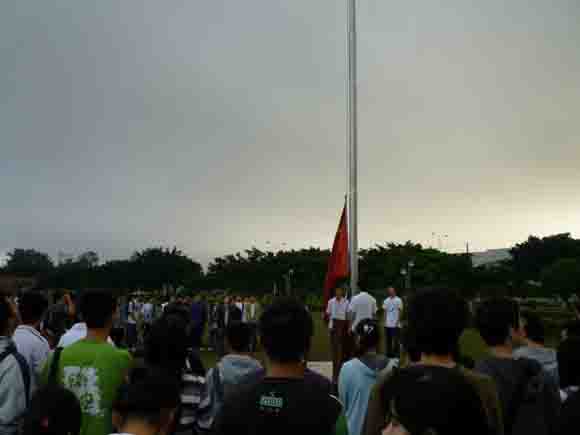 In the early morning of April 21th, 2010, we held a silent tribute out of the “gate of rainbow”, with lots of teachers and students attending. The ceremony began at exactly 7:25, when the presenter announced some details about this disaster and our compassion to the people who are still suffering. No muzak here because there is no electricity available. Instead, we sang the national anthem and watched the Five-Starred Red Flag rising to the top, giving it a solemn salute with eyes.