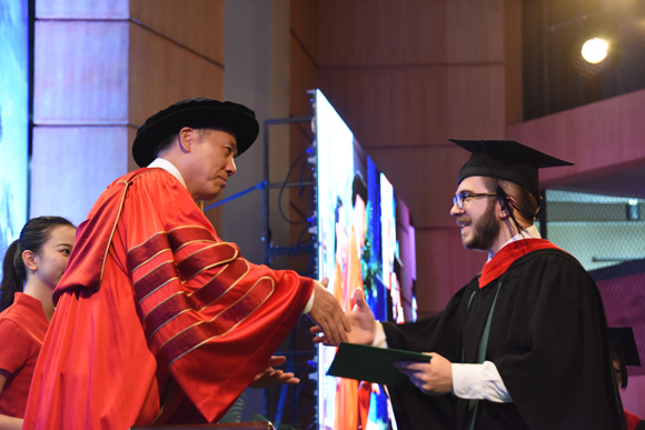 René receiving his bachelor’s degree from SYSU President (Photo taken by Jin Feng)