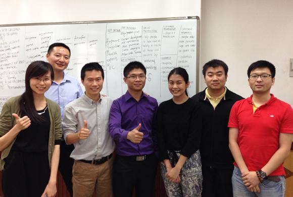 Sungsung (third from right) making a business plan with teammates