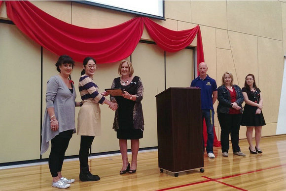 Guo Shenshen receives honor from principal of Aspendale Gardens Primary School for her contribution in SLAP