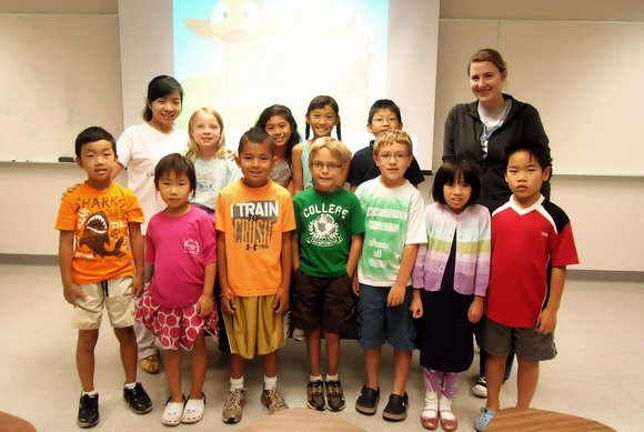 Group photo of Huang Yanqiong and primary students at Chinese Musical class of the Confucius Institute in Indianapolis Language and Culture Summer Camp