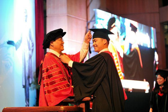 On June 26, the third day of commencement, new faces appeared in the ceremony. They were the first group of undergraduate students who were enrolled in Sino-French Institute of Nuclear Engineering and Technology (IFCEN) in 2010, and the first group of postgraduate students who were enrolled in the Master of Engineering in Instrumental Analysis and Maintenance program in 2012.