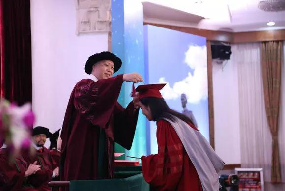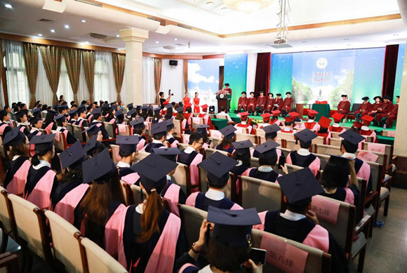The graduation ceremony started with the solemn national anthem. Vice President Wei Hongbo extended congratulations to the graduates, and read the graduation precept written by Dr. Sun Yat-sen.