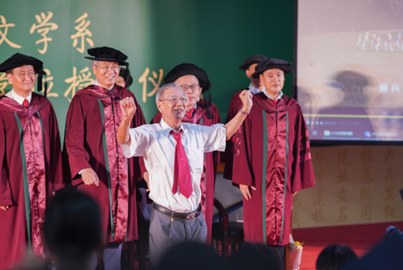 At the end of the ceremony, guided by Professor Huang Tianji, all graduates sang the university anthem.