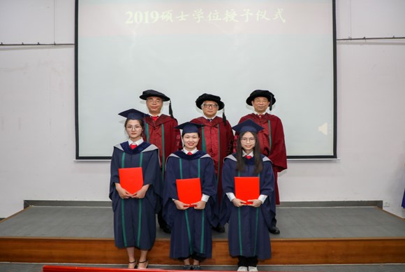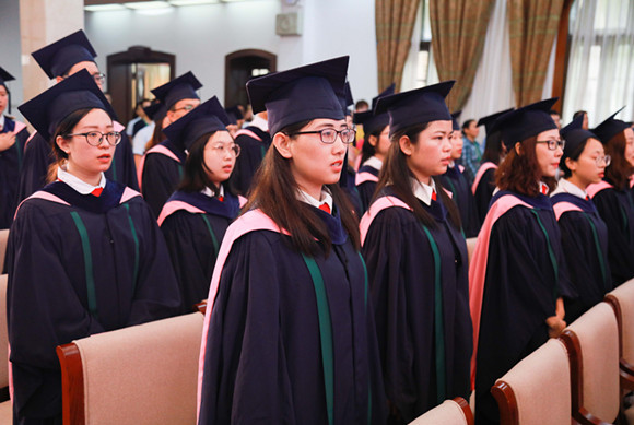 The ceremony started with the solemn national anthem. Deputy Dean Wang Ning read the graduation precept written by Dr. Sun Yat-sen, all graduates rose to listen and replied “obey the instructions”.