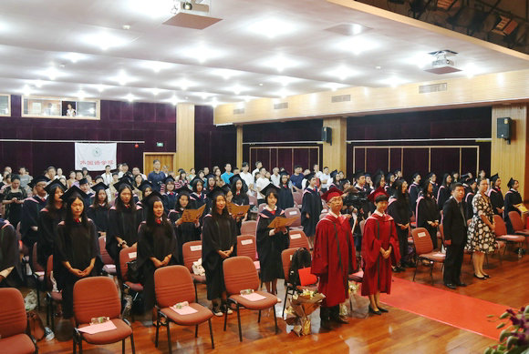 All graduates rose and sang the university anthem. After the ceremony, the graduates and supervisors took a group photo on the lawn in front of the Swasey Hall.