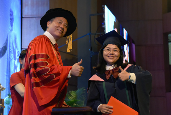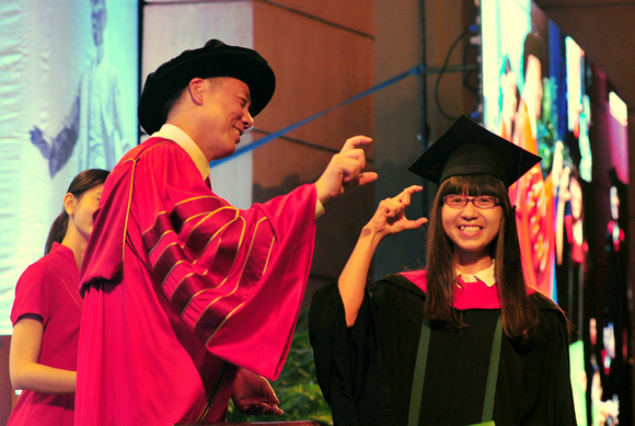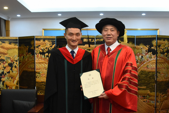 William from the School of Chinese as a Second Language receiving his bachelor’s degree from SYSU President (Photo by Jin Feng)