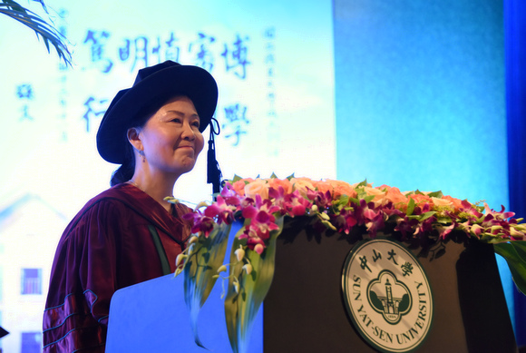 At the age of 96, Prof. Xia Shuzhang holds the scepter and attends the commencement ceremony. (Photo by Cai Shanshan)