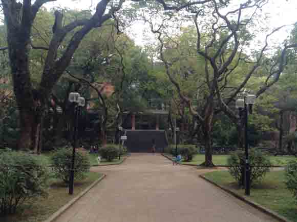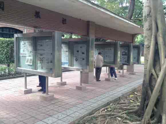 The library building and its surroundings are themselves emblematic of the unique charm of SYSU’s campus. The approach to the building is canopied by a variety of tall spindly trees, lending the walkway an intimate and earthy atmosphere. On the right side of the approach there is a quintessentially Chinese public amenity: all of the mornings major daily newspapers have been pinned up in full on bulletin boards and are available to the public for leisurely perusal.