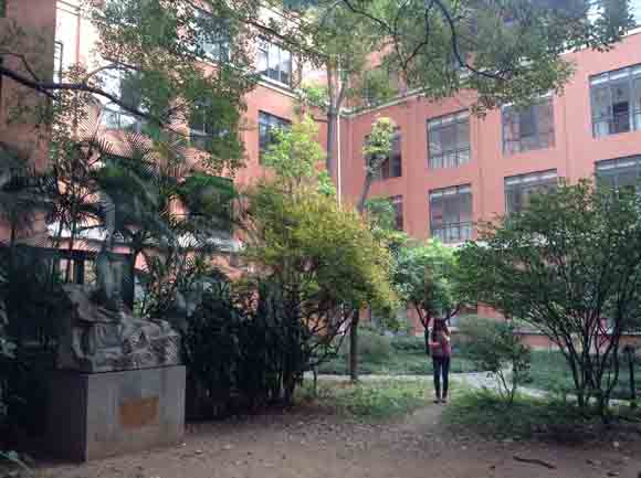 The third floor foreign books section also boasts a sweeping view of the library courtyard. Whether its for making a phone call, taking a smoke break, or just gazing at the stone bust of Chinese literary lion Lu Xun, the courtyard is usually full of students criss-crossing the paths through its gardens.