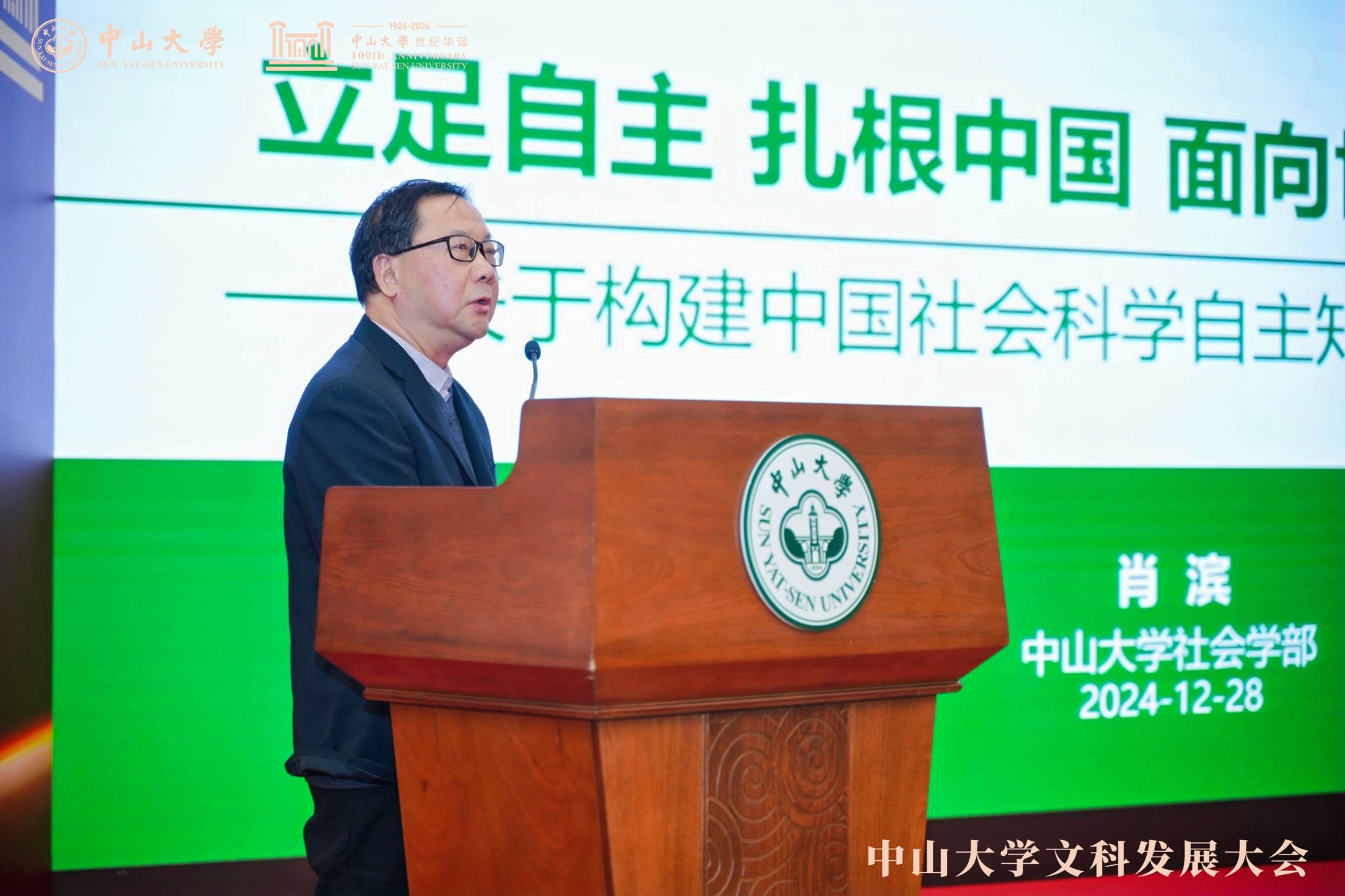 社会科学学部肖滨主任作了题为“立足自主 扎根中国 面向世界 开放创新——关于构建中国社会科学自主知识体系的初浅思考”的专题报告。报告中,他回顾了中国社会科学体系所经历的学科化、国际化、规范化、本土化历程,总结了当前社会科学所面临的挑战、机遇、张力,并提出立足自主性,社会科学需具有中国性、开放性、创新性“三幅面孔”。他还围绕范式转型、方法创新、人才培养、学科建设、服务国家和地方等方面对中大社会科学的未来发展做出了思考和建议。