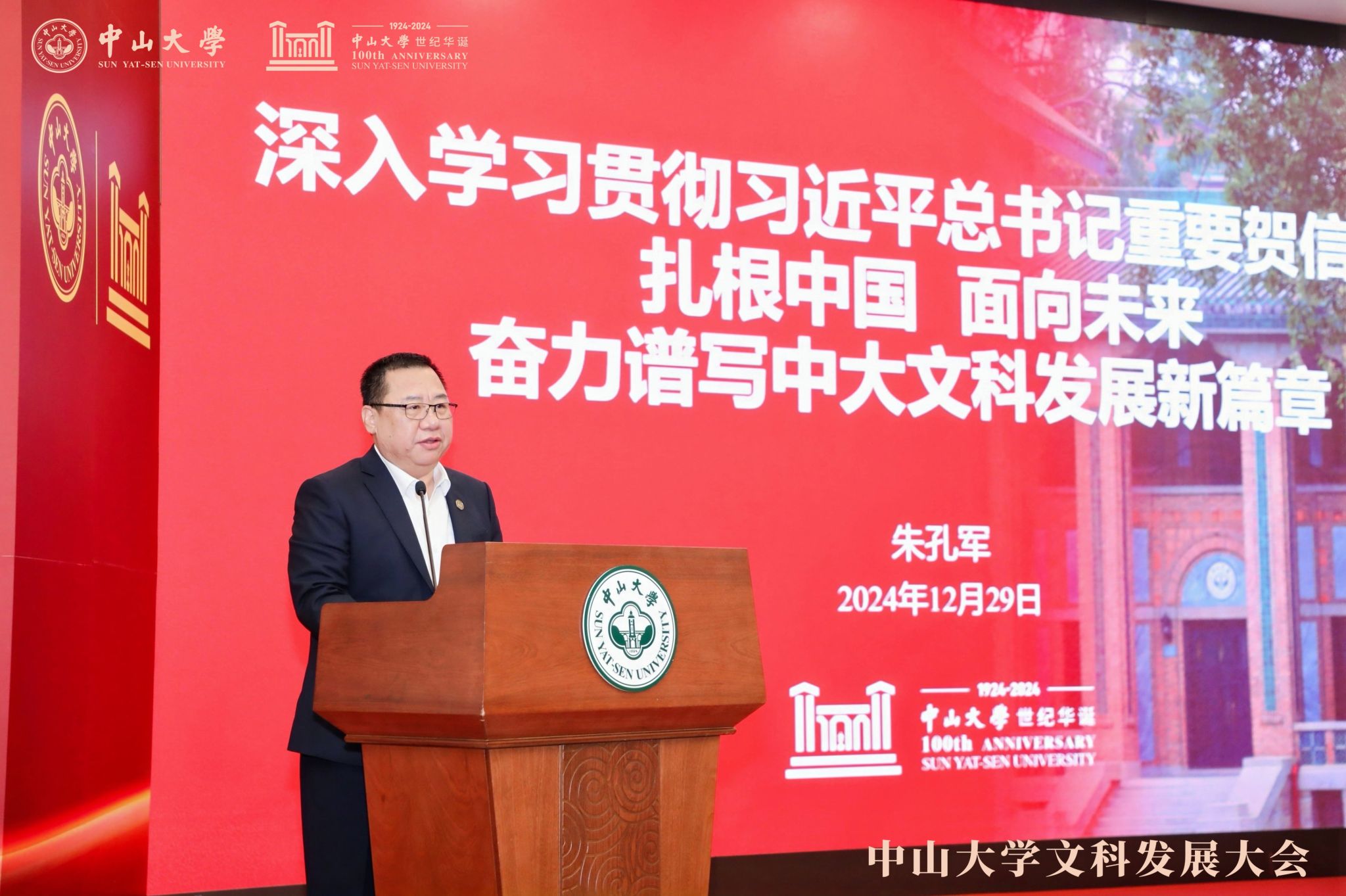 朱孔军书记表示,中大文科人要贯彻落实好总书记重要贺信精神,发挥特色优势,积极服务国家重大战略需求和粤港澳大湾区发展需要,促进国际人文交流与中外文明互鉴,着力提升中大文科的国际影响力。