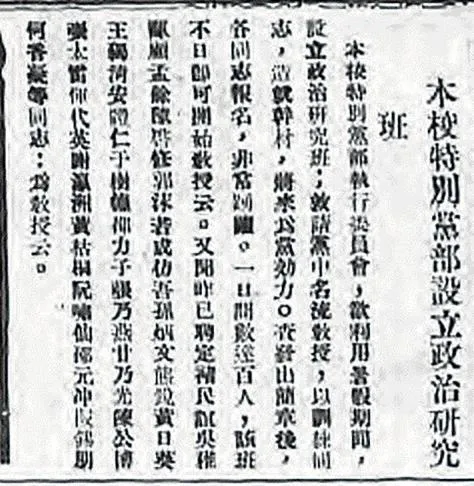 《本校特别党部设立政治研究班》(《国立广东大学周刊》1926年第57期)