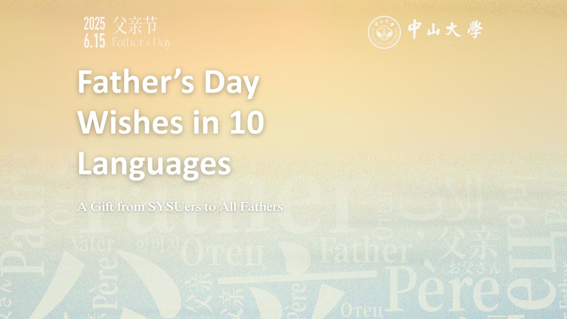 This Father’s Day, SYSU students unite to honor paternal love through reciting classic literary works. From Zhu Ziqing’s poignant Back of the Father to Heinrich von Kleist’s ink-stained letters, they recite iconic texts in ten languages—Chinese, Russian, French, Spanish, German, English, Japanese, Korean, Arabic, and Urdu—bridging cultures through shared themes of fatherhood.“Baba,” “Pa...