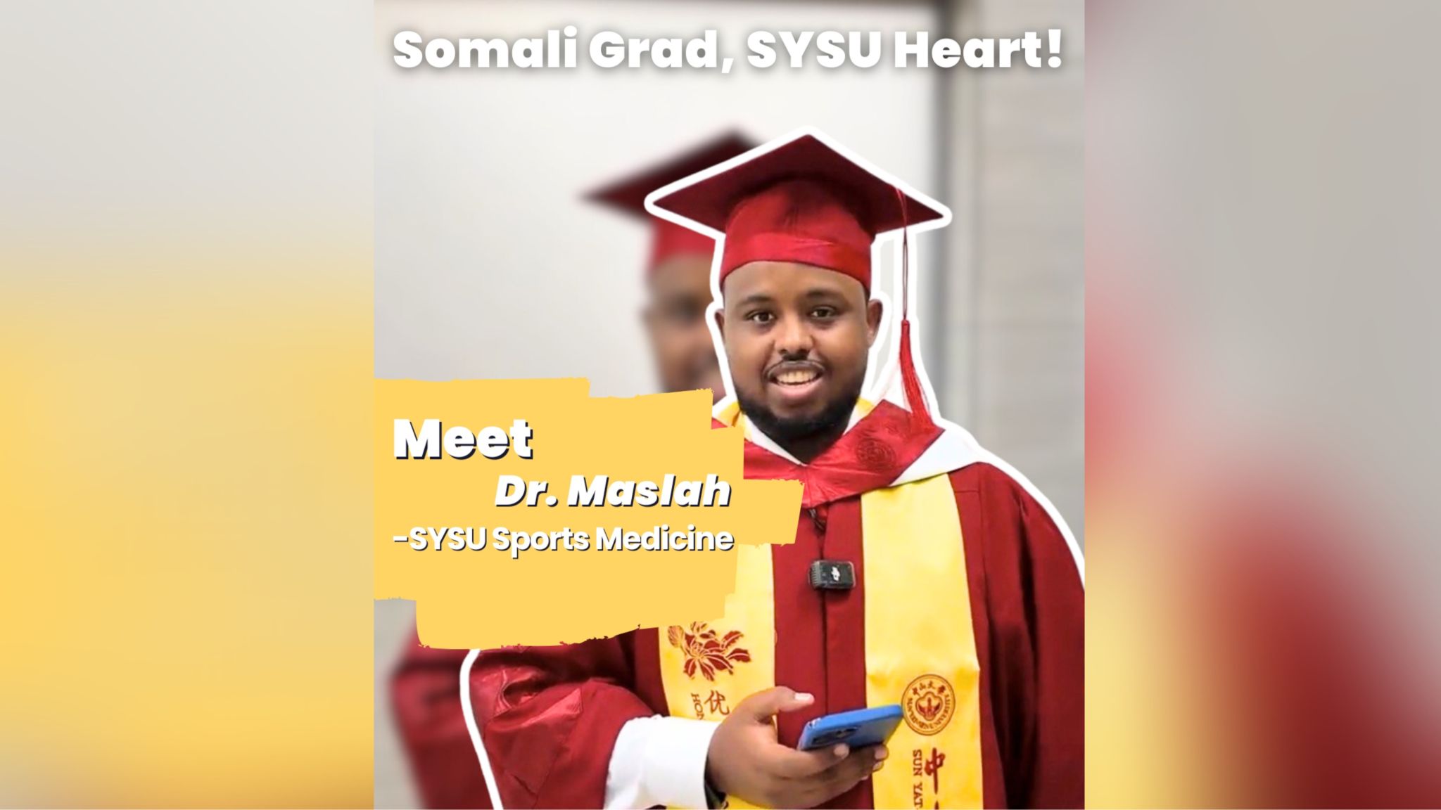 Sun Yat-sen University (SYSU) held its 2025 commencement ceremony on June 21, celebrating the graduating class across its campuses. Among the graduates, Masala, a student from Somalia who earned his Ph.D. in Orthopedic and Sports Medicine from Sun Yat-sen Memorial Hospital, shared his academic journey and graduation reflections at the ceremony.At his graduation, Masala articulated modest yet im...