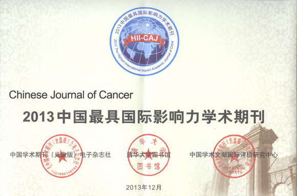 Chinese Journal of Cancer won the title of 2013’ The Highest International Impact Academic Journal of China