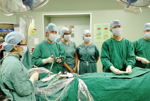 Students from University of Duisburg-Essen observing a surgery at Sun Yat-sen Memorial Hospital