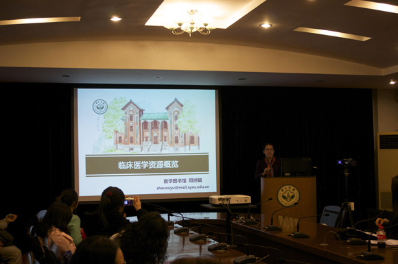 The Journal of Evidence-Based Medicine. She received training in information resource management in Yale University, and studied courses in research ethics in Johns Hopkins University. For many years she has taught courses to graduate students such as medical information retrieval and utilization, evidence based medicine and DME. During her talk, Ms. Zhou introduced some major databases purchased by SYSU, and especially explained the usage of Scopus. She not only compared the pros and cons of different databases, but also gave many useful tips on improving the efficiency in resource searching based on her working experience. In addition, she recommended some helpful e-resources for reference books or medical textbooks, such as the website of McGraw-Hill and Micromedex.