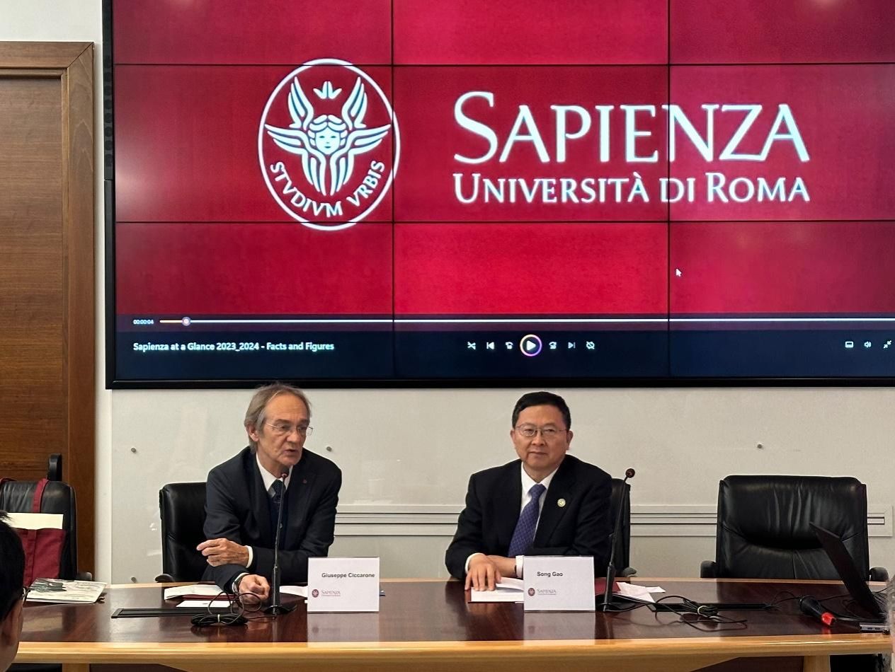 Prof. Song Gao (right) and his delegation visit Sapienza University of Rome.